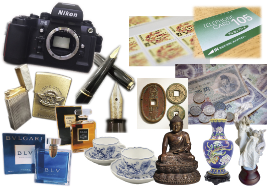 フィルムカメラ、ライター、万年筆、香水、テレフォンカード、切手 など